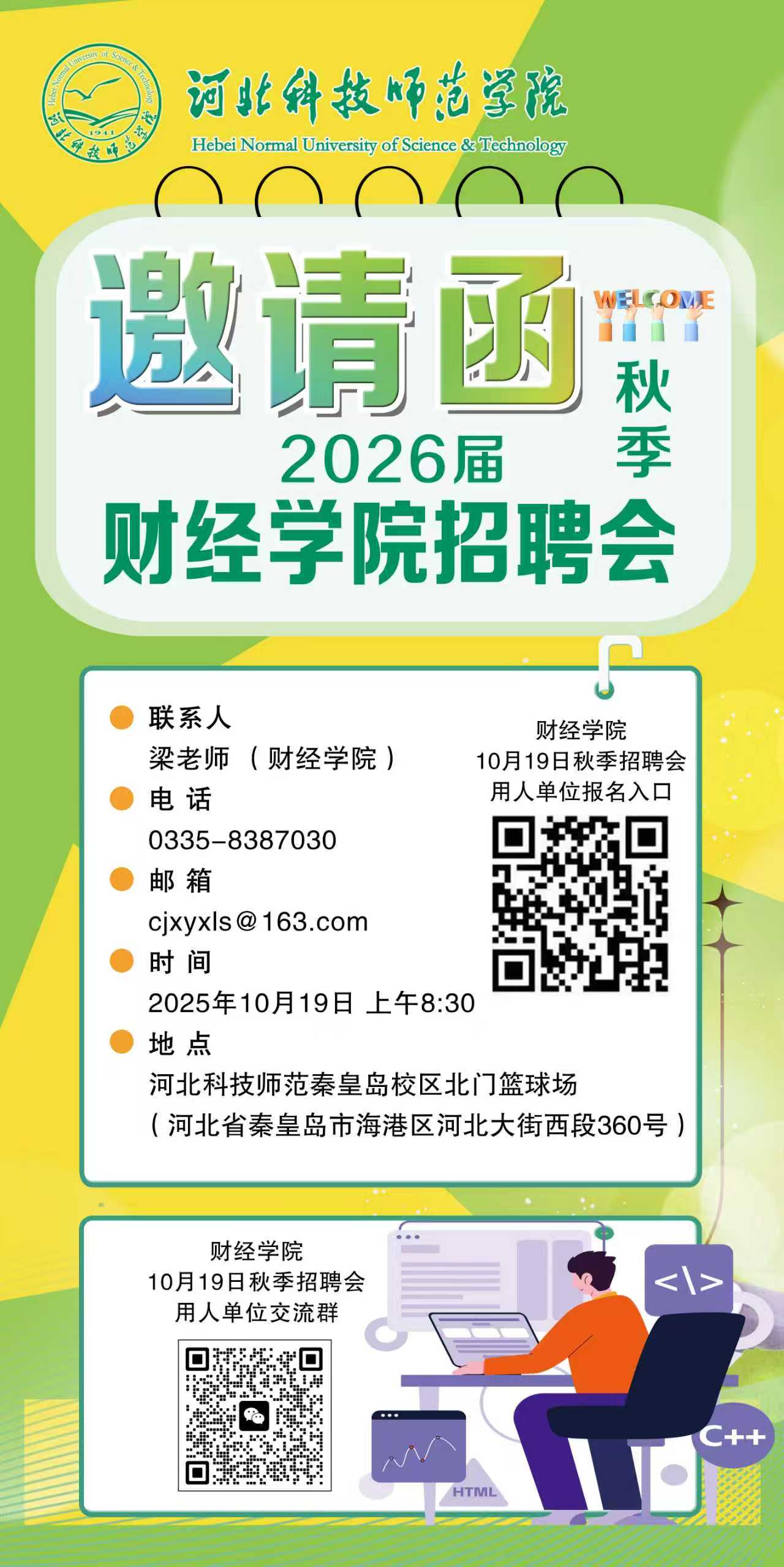 太阳集团2007网站2026届秋季招聘会于10月19日在2007so太阳集团秦皇岛校区北门篮球场举行,诚邀各单位到我院选聘优秀人才,欢迎各用人单位扫码报名,咨询电话0335-8387030。(编辑:路荞华 审核:于秀敏)
